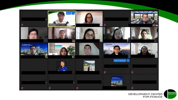 The Development Center for Finance successfully held its Project Finance Seminar on July 10, 17, and 24 (Saturdays), 2021, via Zoom. A total of 35 participants attended the seminar, which included accountants and finance practitioners, investment bankers, engineers, and even lawyers, covering a wide range of industries.