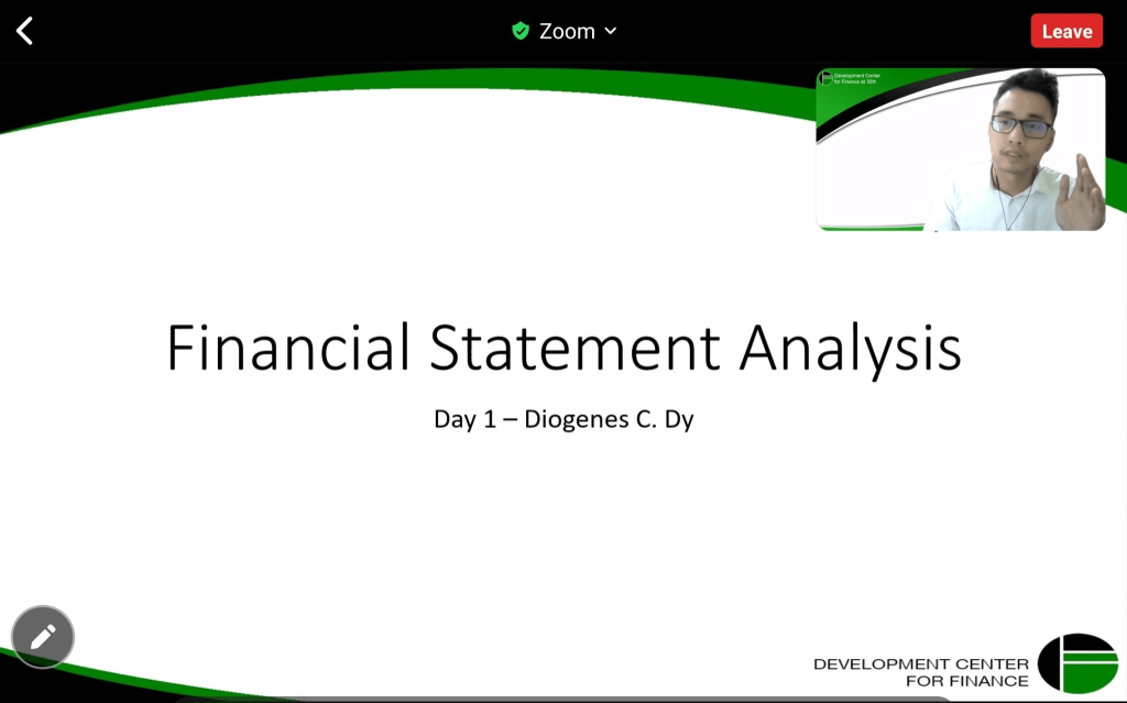 The Development Center for Finance (DCF) successfully conducted another run of the Financial Statement Analysis Seminar, the first public seminar for 2023, on March 4, 11, 18, and 25, and was attended by 40 participants from various companies and industries.