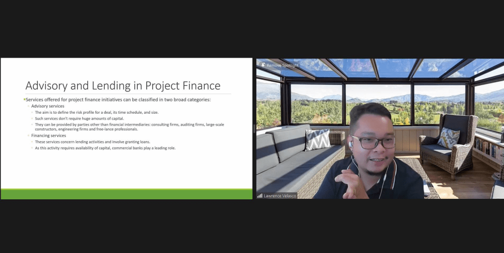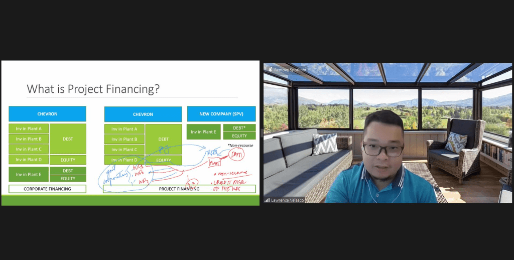 On Day 3, Mr. Velasco explained and demonstrated how to perform a financial evaluation of a project finance deal. He also shared the various sources of financing for project finance transactions. As a culminating activity, the participants went over a Project Finance case to apply concepts learned from the past three (3) sessions.