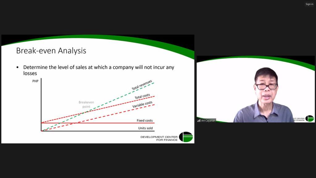Sir Art Cayanan took over on the last day of the seminar, starting the session with a review of the discussions in the past three (3) Saturdays, then introducing other FS analysis techniques, including common-size, trend, and break-even analyses. Cases of several Philippine-listed companies were then presented and discussed to apply all the learnings during the seminar, taking different perspectives, as lenders, financial analysts, and even as investors.