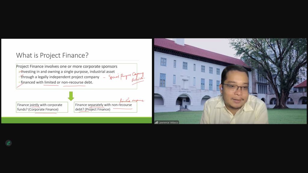 On Day 1, Mr. Velasco covered the distinction between corporate finance and project finance, capital budgeting concepts and techniques, and cost of capital. This session provided participants with a solid foundation in finance concepts relevant to project finance.